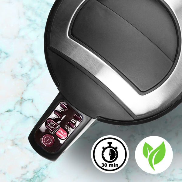 Duronic EK30 BK Hervidor de Agua Eléctrico 3000W de 1.5 L | Temperatura Regulable 40° 60° 80° y 100° C | Libre de BPA y Filtro Antical | Mantiene el Agua Caliente | Color negro